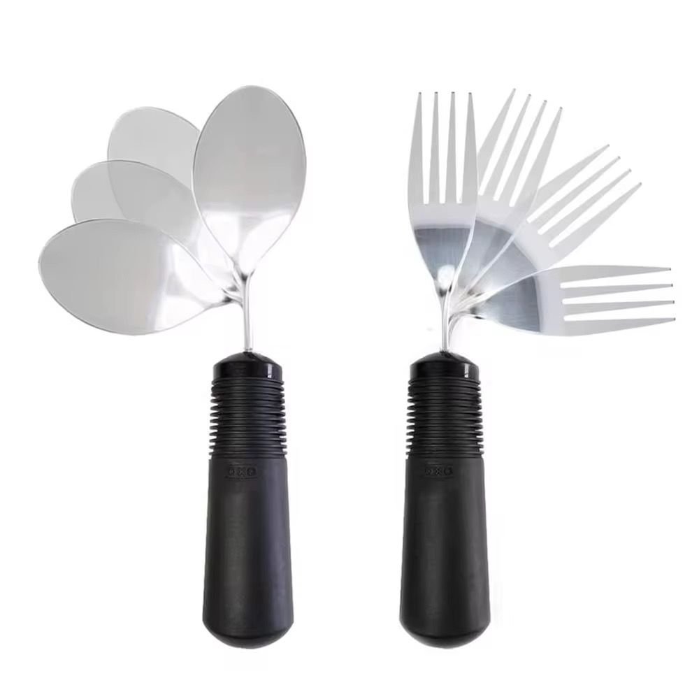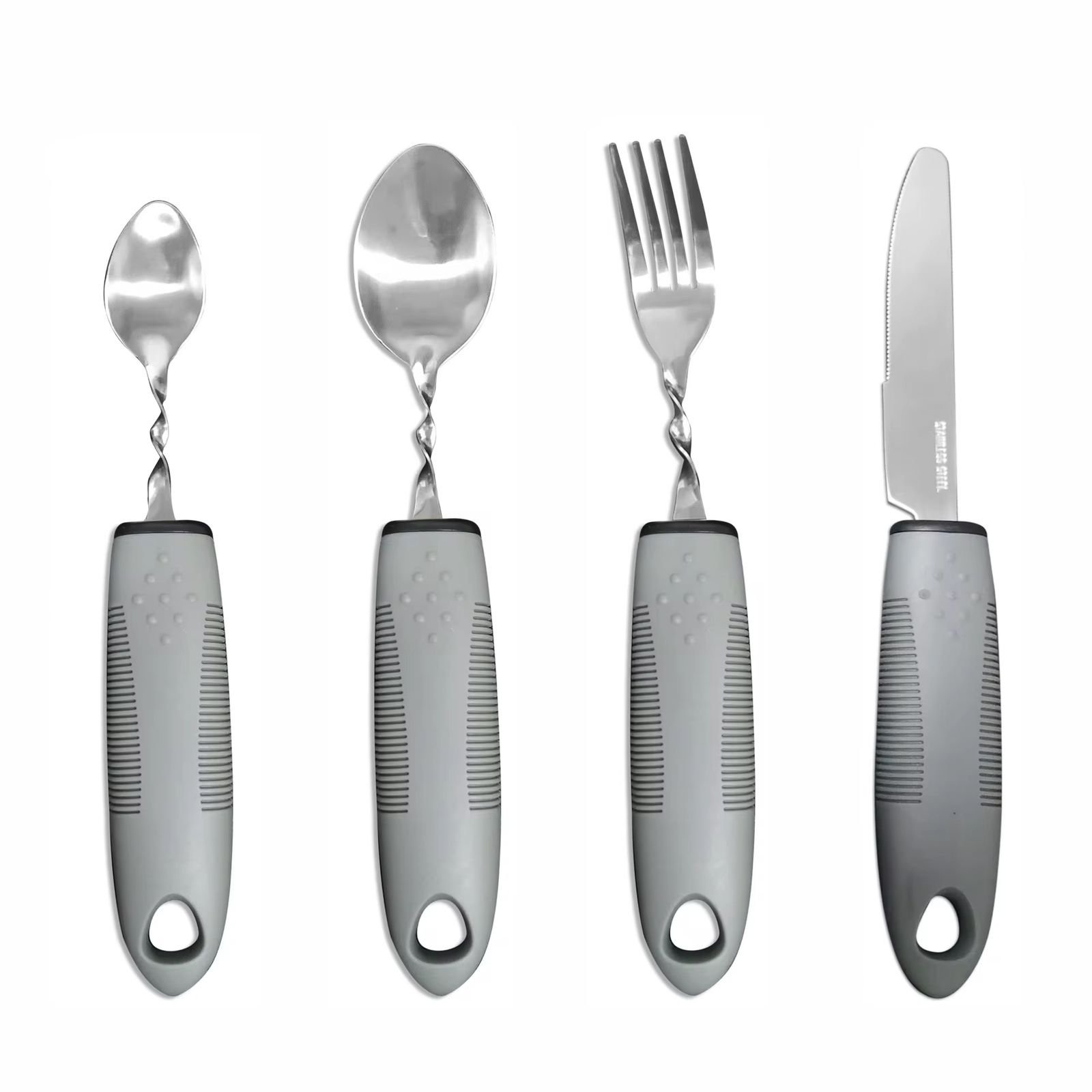 Ces couverts sont spécialement conçus pour aider les personnes ayant une dextérité réduite, des tremblements (comme dans la maladie de Parkinson) ou une force de préhension limitée (arthrite).